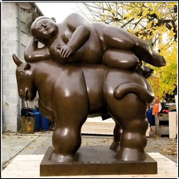 景觀胖女孩與牛銅雕塑