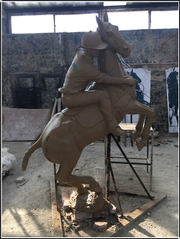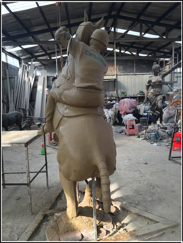 由河北中正銅雕廠家制作生產(chǎn)的鑄銅打馬球騎士銅雕塑今日發(fā)貨。此雕塑總高3米,由天津美院的老師制作生產(chǎn)泥稿。由我廠翻模制作,分塊焊接,表面做古銅色效果,發(fā)往臺灣高雄。