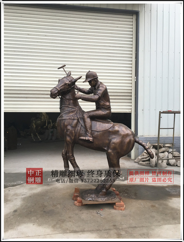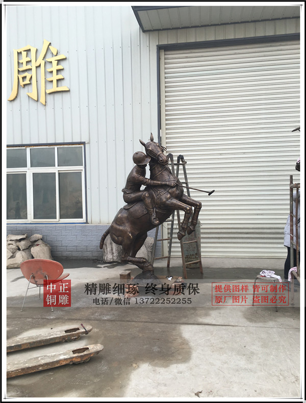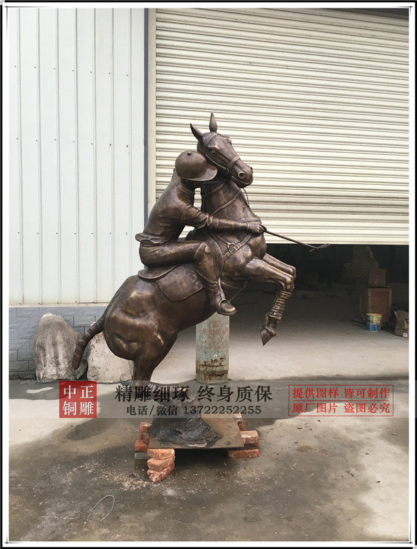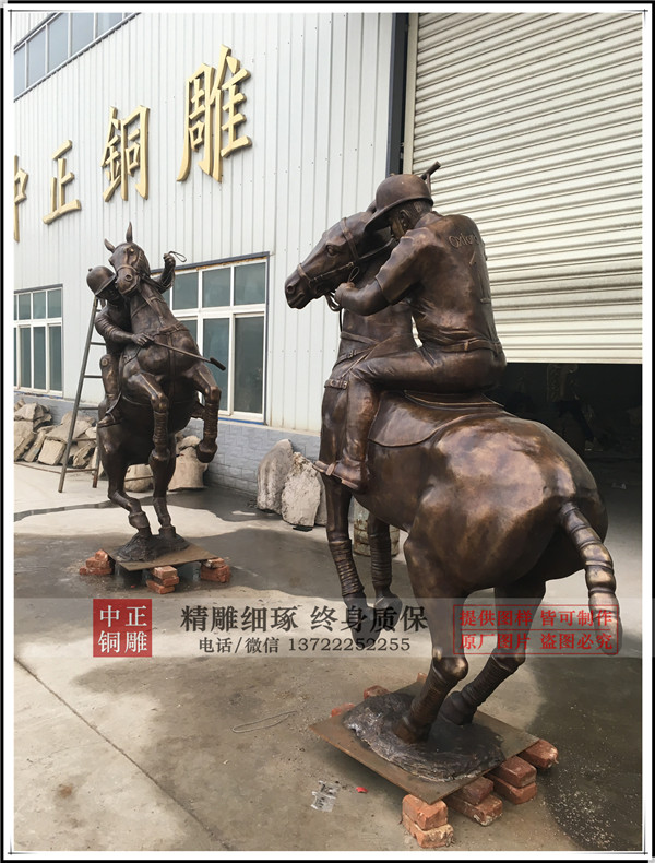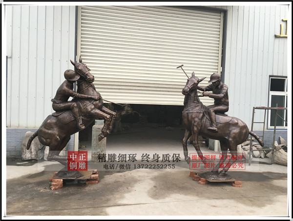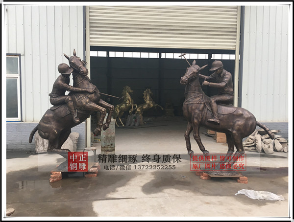 中正銅雕廠家制作生產(chǎn)的鑄銅打馬球騎士銅雕塑今日發(fā)貨